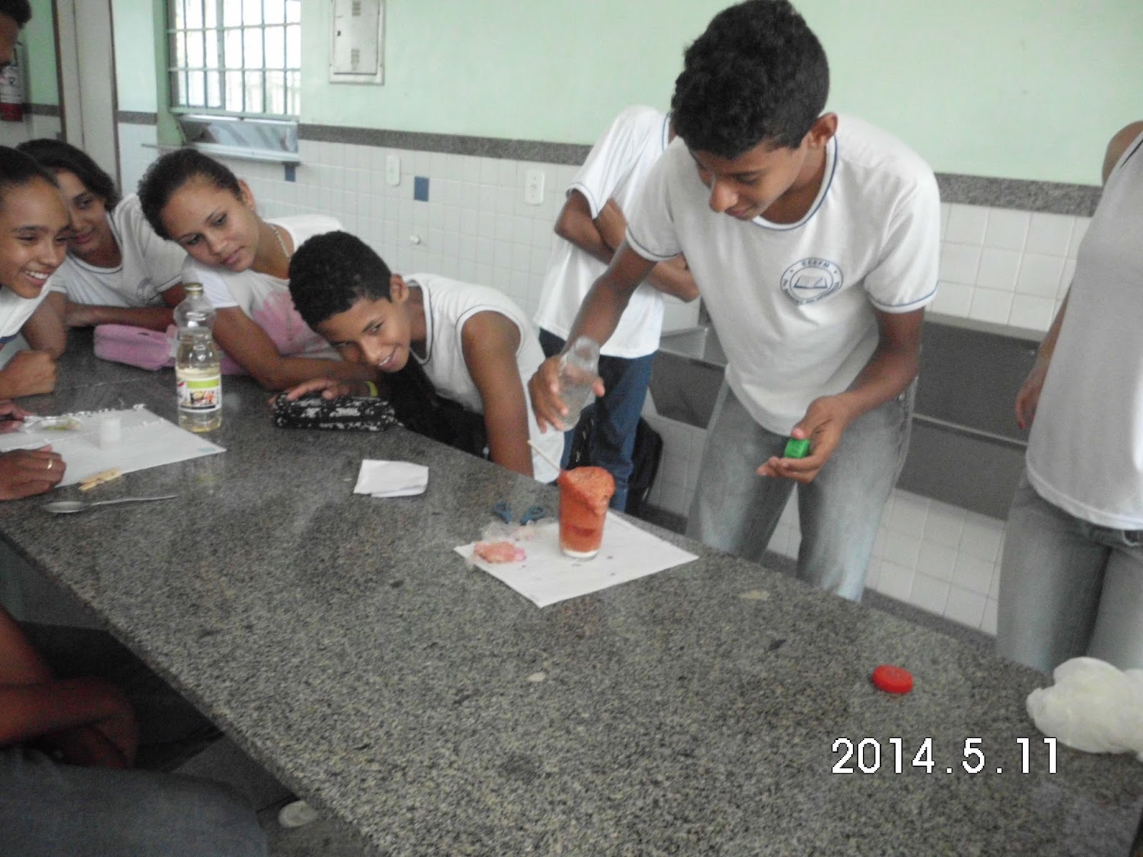 Sob a orientação da professora de Ciências e Biologia, Dilça, os alunos da 1ª Série do Ensino Médio, Noturno e da 8ª Série, Vespertino pesquisaram e apresentaram os tipos de mistura que geram reações químicas, no segundo trimestre. Que tal misturar limão, bicarbonato ou fermento em pó, detergente, corante e vinagre? O resultado não podia ter sido melhor. Espumas e espumas coloridas efervescentes feito larvas de vulcão... Parabéns à professora pela iniciativa e aos alunos pela realização da tarefa proposta com determinação e capricho.
